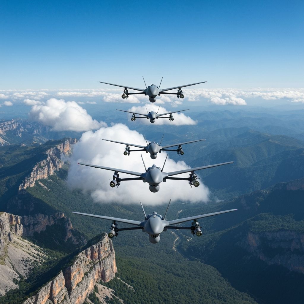 Each drone operates autonomously while maintaining swarm cohesion through decentralized decision-making algorithms.